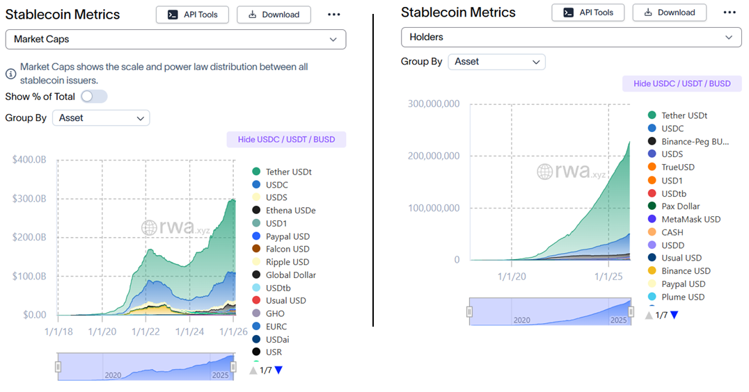 And stablecoins tell the same story. Market capitalization and holder counts continue to set records even as the broader crypto market contracts. With the GENIUS Act signed into law, stablecoins aren't just crypto native tools anymore. They are part of the capital stack and the gateway through which institutions are entering tokenized finance.