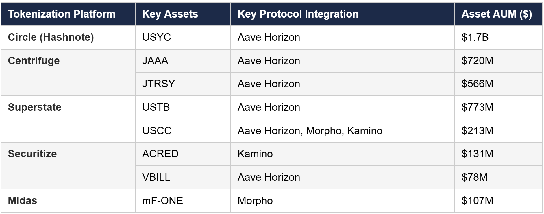 Source: Asset AUM metrics from RWA.xyz (as of 2/22/26)
