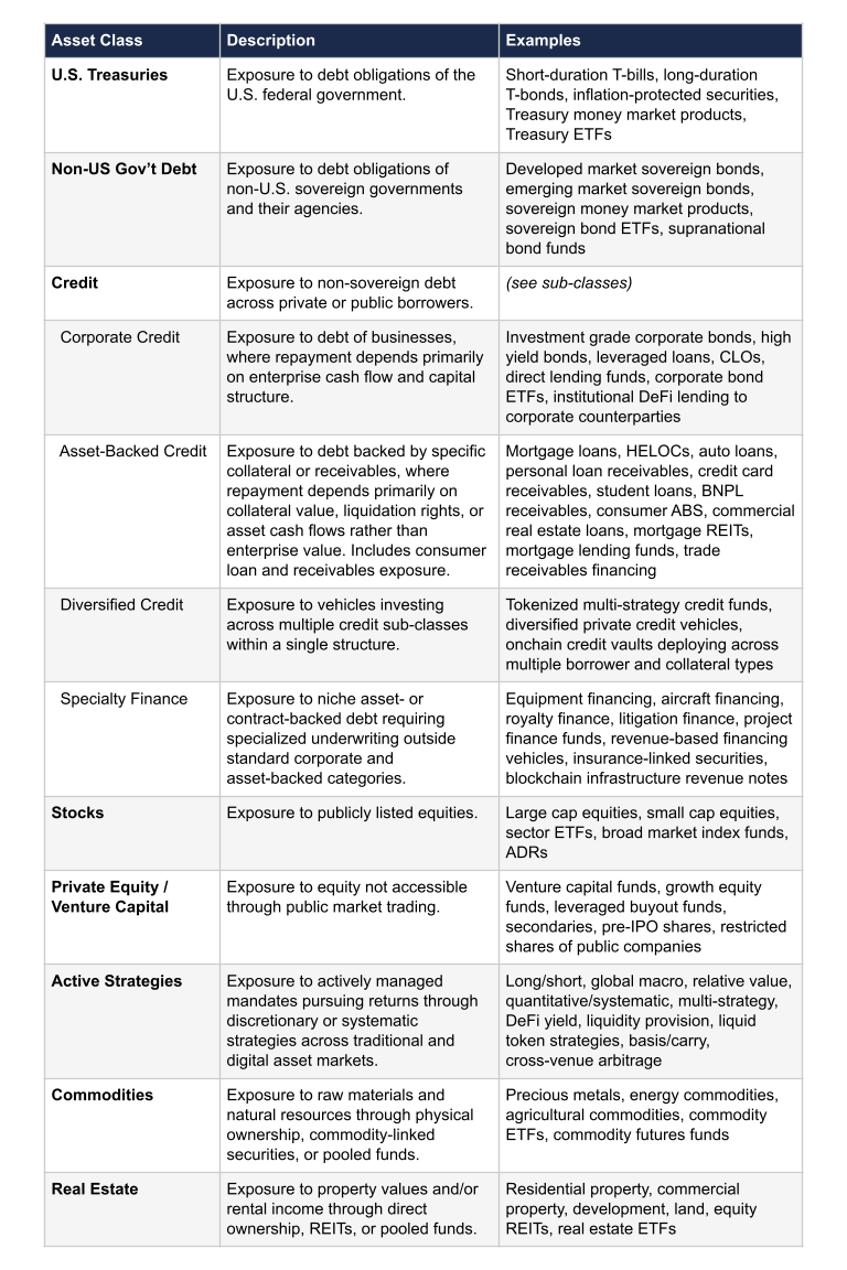 RWA.xyz remains committed to refining this framework over time, because we believe the ability to classify and contextualize tokenized assets will matter just as much as the infrastructure that is used to issue them.
